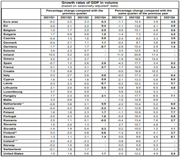 Acum, pentru a face și mai vizibilă proasta performanță a defunctului Guvern Cîțu, să mai adăugăm că, spre deosebire de noi, Uniunea Europeană a avut o creștere medie de 0,4% trimestrul trecut, iar campioanele acestei creșteri sunt Ungaria, cu o solidă evoluție de +2,1% și Polonia, cu +1,7%.