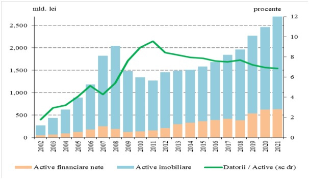 Căci, în aceeași țară, administrată de aceeiași politicieni care tremură la fiecare vânt pentru podurile din județele lor, 2021 se dovedește a fi fost cel mai bun an pentru români de după aderarea la Uniunea Europeană. Deși rămân penultimii din UE la avuție netă/locuitor, românii au cumulat o avere netă totală de peste 2600 de miliarde de lei, aică mai mult decât dublul PIB-ului: