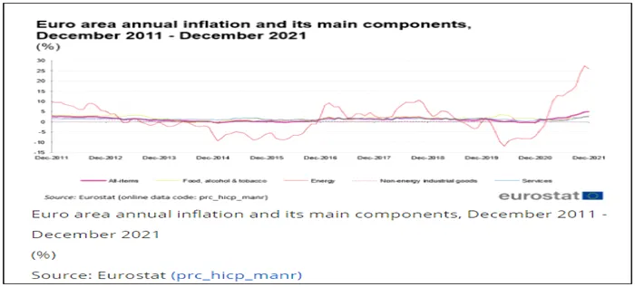 De fapt, nici în zona Euro (36% din tranzacțiile globale) nu avem un fenomen mai blând: inflația a atins 5% în decembrie 2021.