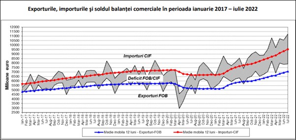 Iar dacă ducem raționamentul până la capăt, iată și consecința scumpirii iraționale a mărfurilor fabricate la noi în raport cu mărfurile fabricate în alte țări: la sfârșit de iulie, avem deja un deficit al comerțului cu bunuri de aproape 19 miliarde de euro, cu aproape 6 miliarde de euro mai mult față de perioada similară a anului trecut. Cu alte cuvinte, mărfurile românești își fac din ce în ce mai greu loc pe piața proprie: