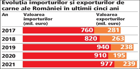 Și pentru a ne lărgi un pic orizontul cunoașterii politice, un mic exemplu de mărfuri la care aflăm cu surprindere că avem un deficit comercial major. Pentru început, uite ce promitea Iohannis încă din 2014, în lucrarea sa de căpătâi, „România lucrului bine făcut”: „În viziunea dreptei românești, modernizarea sectorului agro-rural este de interes național. Pentru ROMÂNIA LUCRULUI BINE FĂCUT, reformarea exploataţiilor agricole, modernizarea spaţiului rural şi deblocarea potenţialului său economic, precum și simplificarea administrativă constituie direcţii clare care vor aduce și beneficiile așteptate. Nu este suficient să conştientizăm că avem un potenţial agricol imens, ci trebuie să facem ca agricultorul român să devină un pion important în arhitectura economiei românești. Este vitală transfomarea agriculturii româneşti într-un motor de creştere economică, prin crearea de locuri de muncă pentru populaţia din mediul rural și prin susținerea performanței și a veniturilor agricultorilor”. Și iată și rezultatul : am ajuns, în 2021, la un deficit de aproape 5 miliarde de euro la comerțul cu produse alimentare (sursa aici)! România importă carne în valoare de 1 miliard de euro și exprtă cu 740 de milioane de euro mai puțin. Citiți, vă rog, în oglindă, promisiunea din cărticica roșie a lui Iohannis și tabelul comerțului exterior cu carne:
