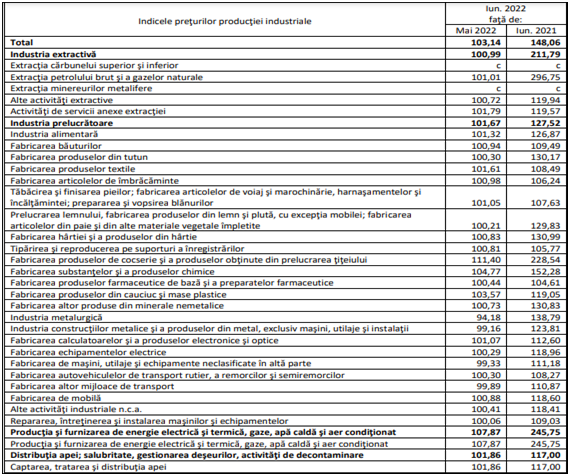 Cu 145% au crescut prețurile, doar față de iunie 2021 la energie electrică, termică și gaze naturale, cu 111% în industria extractivă și cu 118% au crescut prețurile combustibililor!