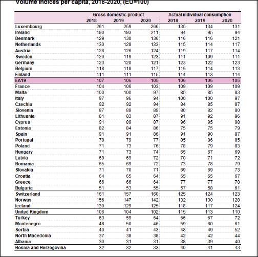 Date 23 Oct 2021 . Iată, în esență care este clasamentul PIB/locuitor, partea care ne privește, atât în valoare nominală, cât și la paritatea puterii de cumpărare (PPP):