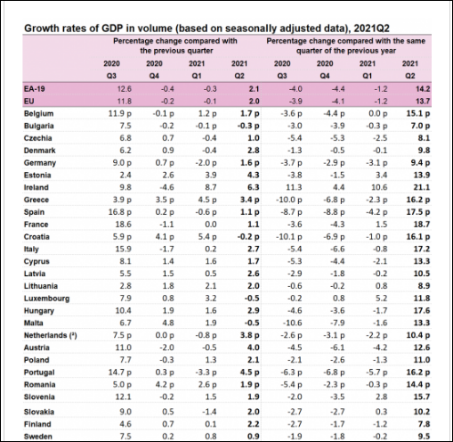 Ei, poate de aici a luat Heroiu informația că România a depășit Slovacia anul trecut, căci Eurostat ne indică faptul că, la final de 2020, Polonia era la 76% din nivelul mediu al UE la indicatorul PIB/locuitor, Ungaria la 74%, România la 72% și Slovacia la 71%. Bun, poate avem un capăt de ață de care să ne legăm, știind situația la finele anului trecut. Hai să vedem ce date avem pentru anul acesta: