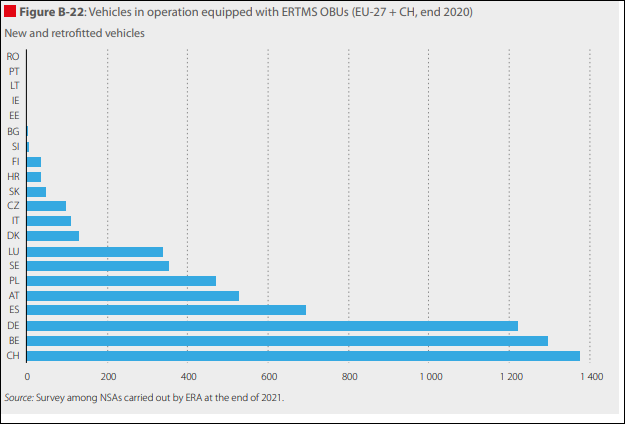 Și dacă vreți să știți care este rezultatul unui deceniu de prioritate europeană pentru calea ferată, iată-l: țările bogate sunt și cele mai dezvoltate feroviar. De ce? Simplu, pentru că ele au avut bani proprii de investit în domeniu și au și investit aceste sume. Iată cum arată tabloul statelor europene după criteriul lungimii rețelei modernizate și echipate cu sistemul modern, standardizat, pentru managementul circulației feroviare , ETCS (European Train Control System):