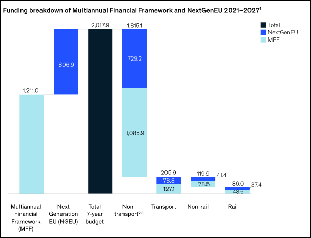 Să încheiem, totuși, cu o notă de optimism: pentru Mecanismul de redresare și reziliență plus cadrul financiar actual, Uniunea europeană alocă 2000 de miliarde de euro, din care o zecime pentru transporturi 9205 miliarde de euro). Din cele 205 miliarde de euro, peste 40% (86 de miliarde de euro) revin căii ferate: