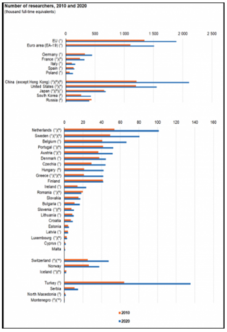 Și cum numerele sunt cea mai corectă ilustrare a oricărui enunț, iată și dovada: România este singurul stat membru al Uniunii Europene în care a scăzut numărul de cercetători din 2010 până în 2020. Cu 7% a scăzut: