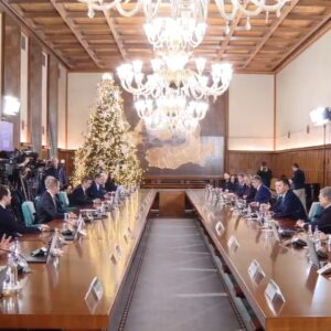 Reprezentanții Coaliției de Guvernare s-au reunit luni dimineață pentru a semna pactul de guvernare pentru următorii patru ani. Marcel Ciolacu, PSD, Ilie Bolojan, PNL, Kelemen Hunor, UDMR, și Varujan Pambuccian, Alte Minorități, au căzut de acord asupra împărțirii funcțiilor în Guvern și în Parlament.