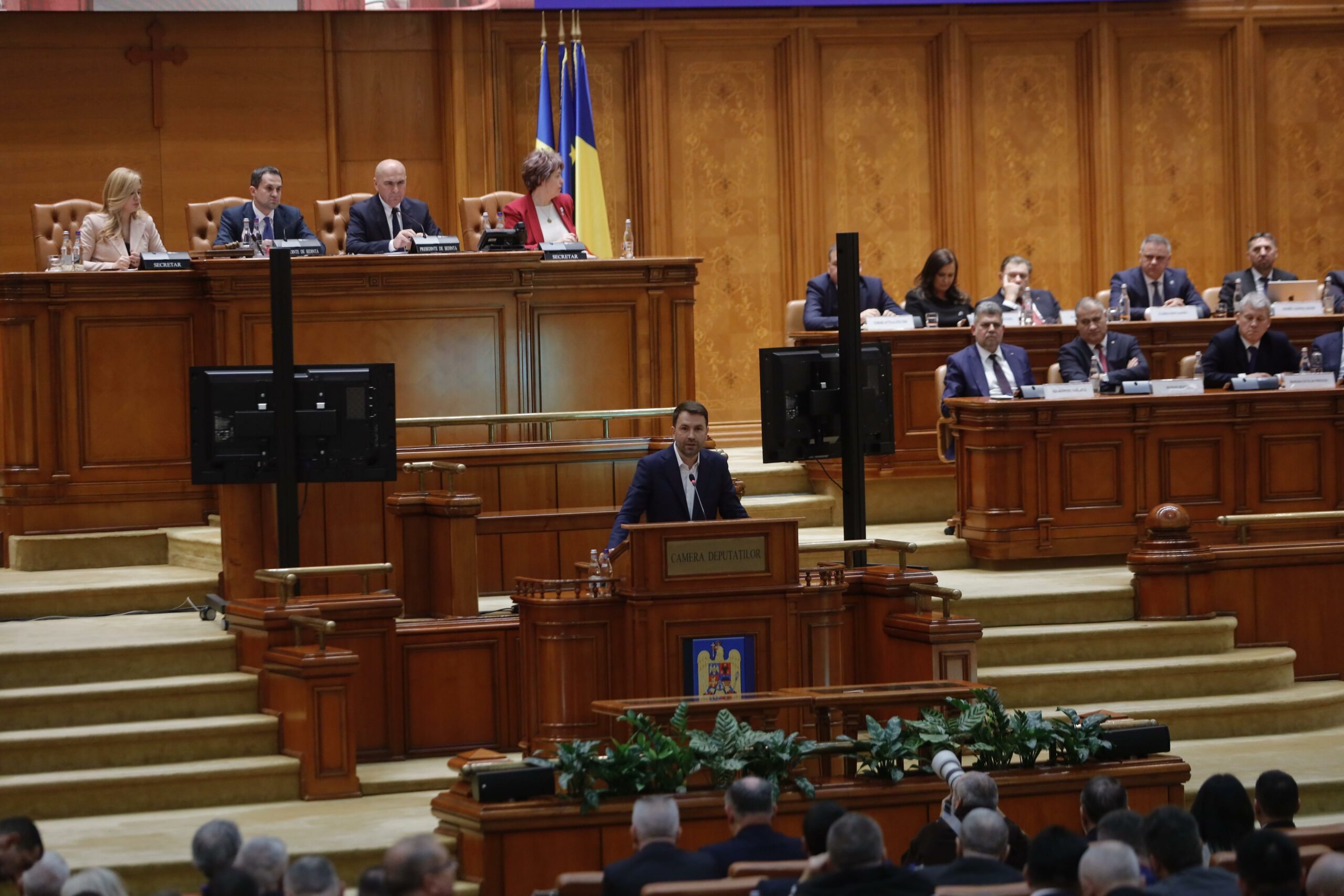 De la tribuna Parlamentului, preşedintele AUR, George Simion, a făcut un apel către clasa politică să păstreze „echilibrul între putere și opoziție”.