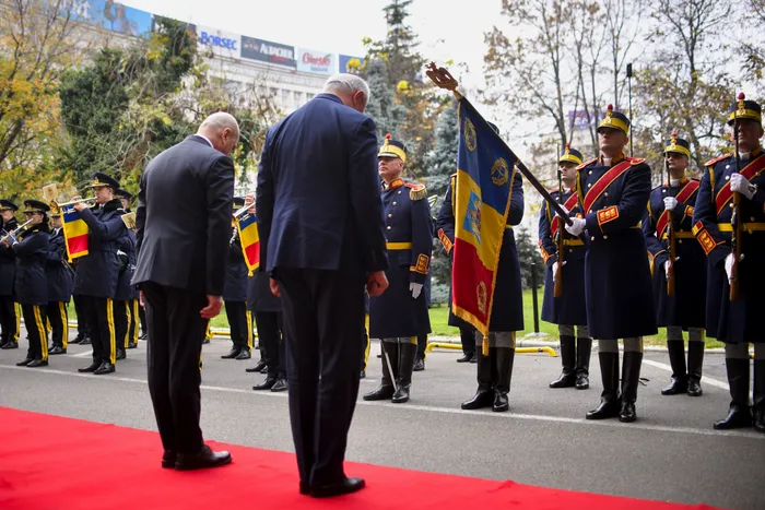 Premierul Ilie Bolojan l-a primit cu onoruri militare pe Alexandru Munteanu, prim-ministrul Republicii Moldova, la Palatul Victoria. Este prima vizită externă a lui Munteanu de la învestirea în funcția de premier.