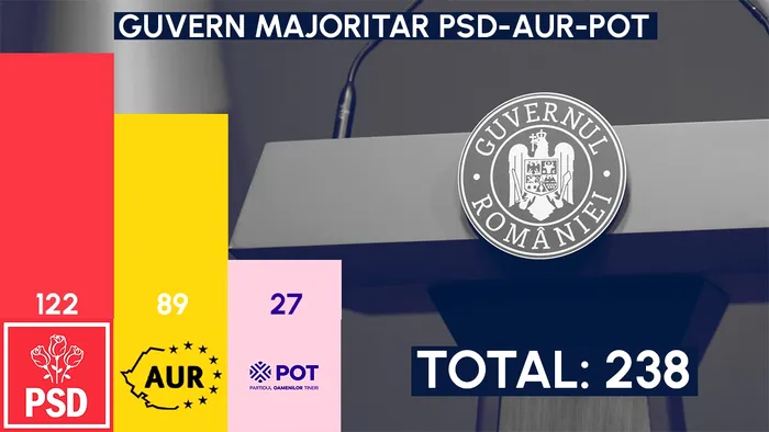 În acest scenariu, ar exista o majoritate parlamentară, fragilă totuși, de 238 de mandate. Ori, în PSD, există în acest moment două tabere: una minoritară, de stânga europeană, reprezentată de Victor Negrescu și alta mai naționalist-conservatoare, reprezentată de Paul Stănescu și Lia Olguța Vasilescu. Ori tabăra naționalist-conservatoare ar putea înclina balanța spre o guvernare cu AUR.