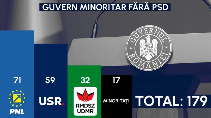 PNL, USR, UDMR și minoritățile au împreună 179 de mandate în Parlament. Dacă se mai adaugă și toți cei 14 deputați neafiliați, tot nu ar strânge numărul necesar pentru formarea unei majorități parlamentare, adică de 50% plus 1, respectiv 233 de mandate. Ori, în acest caz, PSD ar putea vota în Parlament un guvern minoritar.