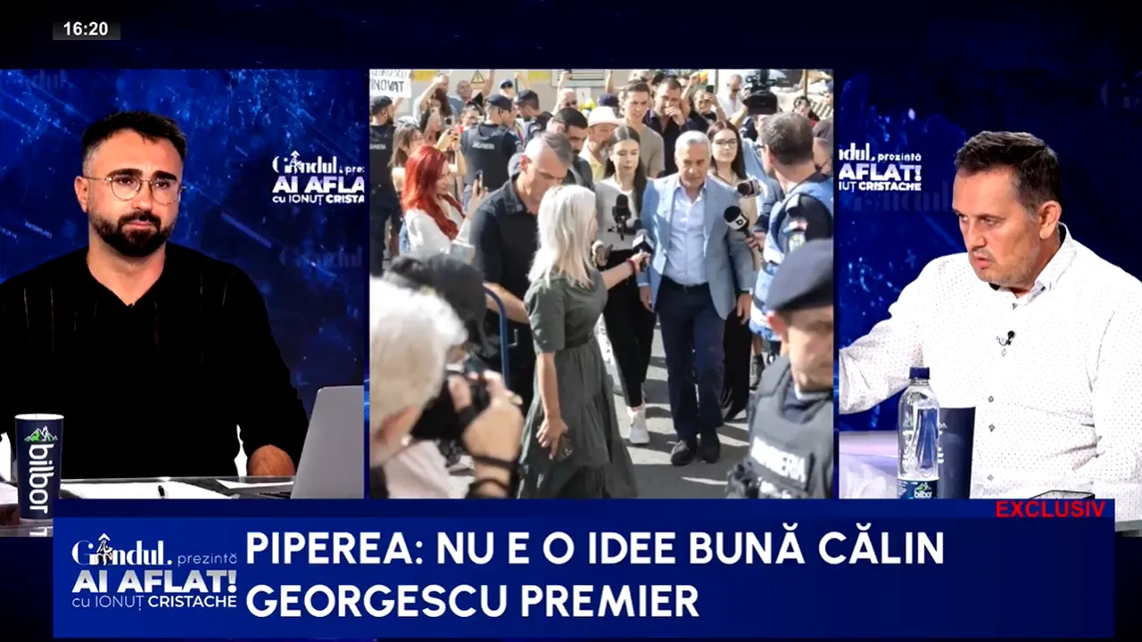 În cadrul unei ediții transmise live de Gândul, Gheorghe Piperea a declarat că numirea lui Călin Georgescu în funcția de prim-ministru „nu ar fi o idee bună”, argumentând că fostul prezidențiabil „nu este un om de echipă”. Urmăriți aici, integral, emisiunea lui Ionuț Cristache.