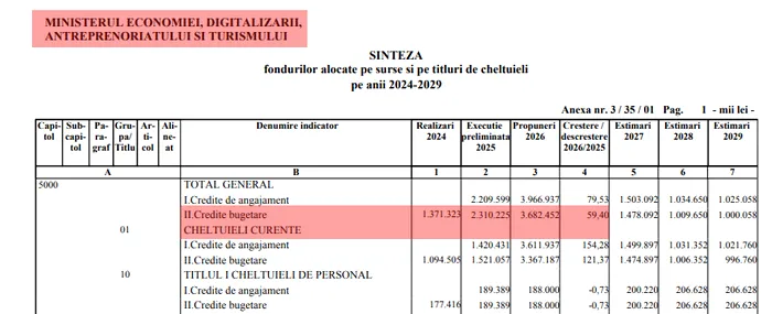 Și Ministerul Economiei beneficiază de un salt bugetar important: 3,68 miliarde de lei, cu 59,40% mai mult decât în 2025, când bugetul era de 2,31 miliarde de lei.