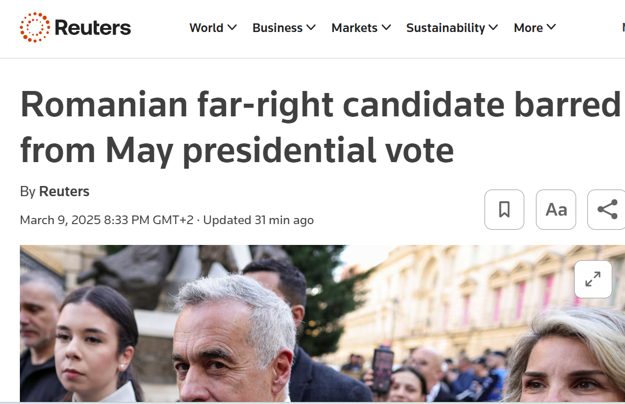 Candidatul de extremă-dreapta român a fost EXCLUS de la scrutinul prezidențial în luna mai, titrează Reuters.