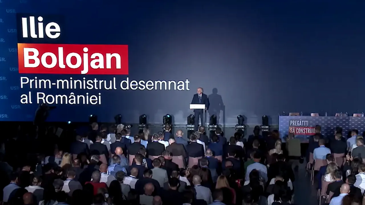 Ilie Bolojan vorbește în dublă calitate la Congresul USR, premier desemnat și președinte al PNL, despre situația bugetară a țării, spunând că viitorul Cabinet va fi unul „de sacrificiu”.