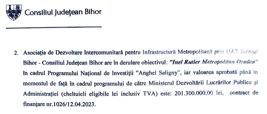 „Proiectul finanțat prin PNDL – Extinderea alimentării cu apă și canal pe străzi din municipiul Oradea, cu o valoare totală de 52.142.000 lei.”, au răspuns reprezentanții primăriei.
