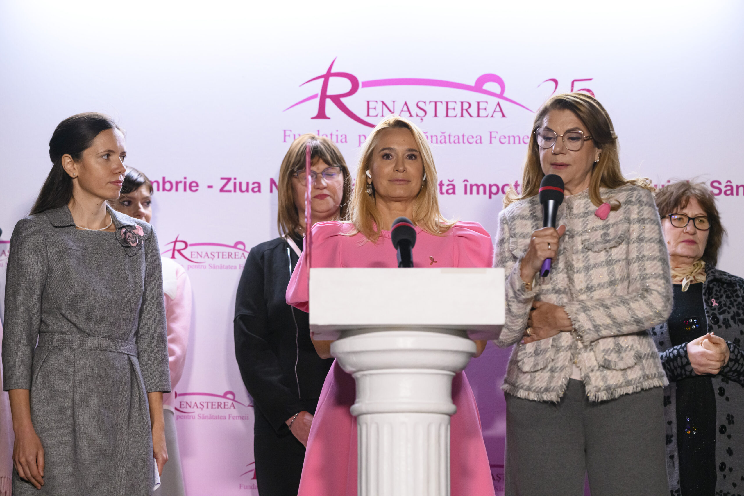 Andreea Esca (C) sustine un discurs in timpul evenimentului organizat de Fundatia Renasterea, la Palatul Cotroceni din Bucuresti, cu prilejul Zilei Nationale a Luptei impotriva Cancerului de San, miercuri, 1 octombrie 2025. ALEXANDRU DOBRE / MEDIAFAX FOTO