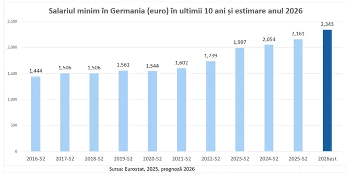 Evoluția salariului minim în principalele țări UE în ultimii 10 ani (2016-2025), precum și planurile acestor țări europene pentru anul 2026.