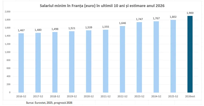Are un mecanism automat de indexare a salariului minim în funcție de inflație și creșterea salariului mediu. În ultimii 10 ani salariul minim brut a crescut cu 23%. Pentru 2026 se prevede continuarea indexării: estimările indică 1.900 euro în 2026, salariul minim crescut în funcție de rata inflației. Franța menține astfel salariul minim la 60% din salariul median – unul dintre cele mai ridicate rapoarte din UE. Acest proces nu a împiedicat șomajul să scadă spre 7%. Confruntată cu o criză bugetară persistentă, incertitudine politică și tensiuni sociale, Franța va crește salariul minim și anul viitor, estimările aratând că acesta va ajunge de la 1802 euro în 2025 la 1900 euro în 2026 (plus 5,4%).