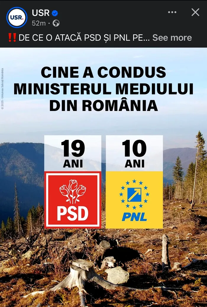 De cealaltă parte, USR răspunde cu aceeași monedă și afirmă că partenerii de coaliție au condus anterior Ministerul. Într-o postare intitulată „Cine a condus Ministerul Mediului din România”, reprezentanții USR susțin că problemele actuale sunt rezultatul „deciziilor” foștilor miniștri PSD și PNL.