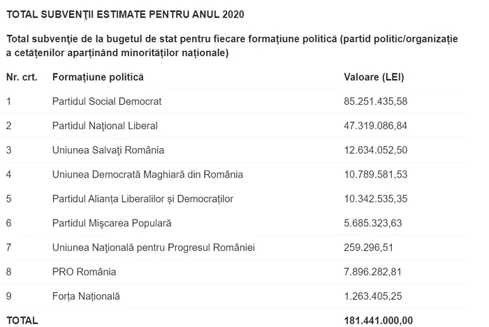 Prin derogarea făcută de Guvernul Orban, în urma unui amendament depus de Pro România la legea bugetului și acceptat de Executiv, în 2020 partidele politice vor primi bani de la buget în funcție de numărul de parlamentari, indiferent dacă respectivul partid a participat sau nu la alegeri, cum este cazul Pro România și formațiunea lui Teudor Meleșcanu.