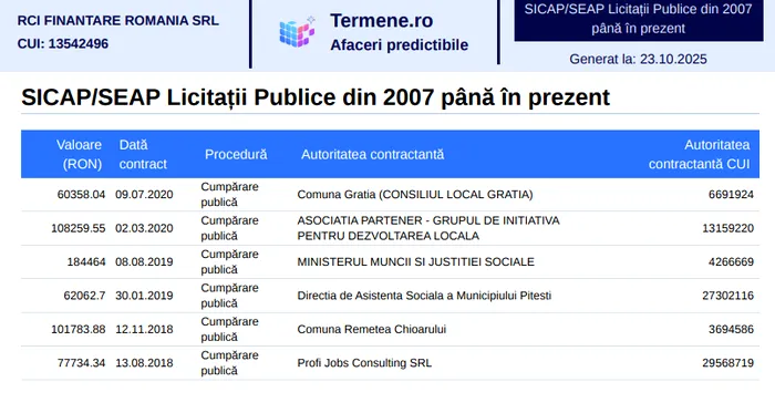 În ultimii ani, firma controlată de cei doi oameni de afaceri a avut zeci de contracte cu statul, prin achiziții directe și licitații publice. Printre instituțiile care au apelat la serviciile de la RCI Finanțare România se numără Ministerul Muncii, Centrul Județean de Resurse și Asistență Educațională Tulcea, Primăria Constanța, Comuna Mihail Kogălniceanu și Camera de Comerț Dâmbovița.
