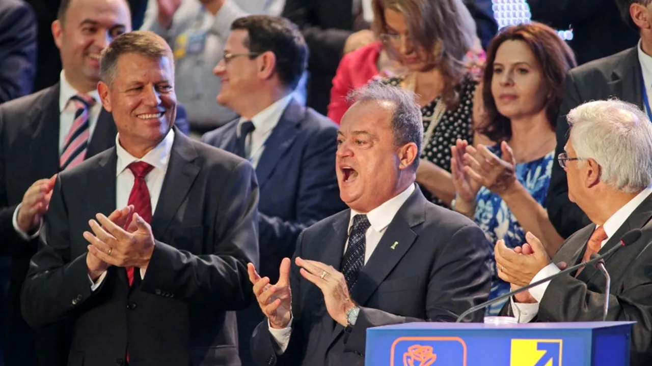 În timp ce Blaga a cântat cu poftă imnul partidului său, Klaus Iohannis, aflat pentru prima dată la o astfel de experiență, s-a limitat să aplaude și să zâmbească în timpul intonării melodiei.