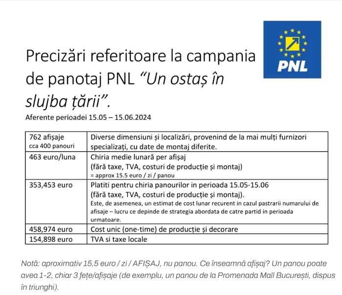 PNL a plătit două milioane de euro pentru 400 de panouri publicitare cu imaginea lui Nicolae Ciucă și sloganul „Un ostaș în slujba țării”, panouri amplasate de-a lungul principalelor autostrăzi și drumuri naționale din România. Aceste costuri, care acoperă o perioadă de trei luni de afișaj, au fost suportate din bani publici, mai precis din subvenția primită de PNL de la bugetul de stat.