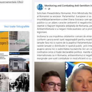 Centrul de Monitorizare și Combatere a Antisemitismului cere ridicarea imunității parlamentare a Dianei Șoșoacă din cauza declarațiilor antisemite eliberate în spațiul public. Aceasta i-a învinuit pe „evrei” pentru faptul că a fost înlăturată din cursa prezidențială și a invocat două simboluri legionare, „Garda și căpitanul” în același discurs împotriva deciziei CCR.