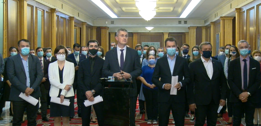 Nu s-a întâmplat niciodată în 30 de ani că oamenilor care au semnat moțiunea de cenzură să li se spună: Nu avem încredere că e semnătură dvs. Avem îndolei serioase. E un abuz care aruncă România în beciul pseudo-democrației. Ceea ce s-a întâmplat astăzi ne arată că trebuie să folosim planul B, pentru că planul A era moţiunea de cenzură. Sunt două variante, fie PNL acceptă că USR PLUS este un partener serios pentru dezvoltare şi mergem mai departe cu un nou premier. Fie PNL merge pe varianta USL, alături de PSD. Este o decizie grea pe care niciunul dintre noi nu am luat-o uşor, dar este un mesaj de care România avea nevoie. După 30 de ani trebuia să vină un moment în România în care un partid să spună aşa nu se mai poate. Am văzut că PSD e în echipa câștigătoare. Dacă vor să meargă pe această variantă, USR PLUS va respecta regulile și democrația. E o decizie grea. dar România are nevoie de un partid care să spună: Ori ne respectăm angajamentele, ori plecăm acasă!”