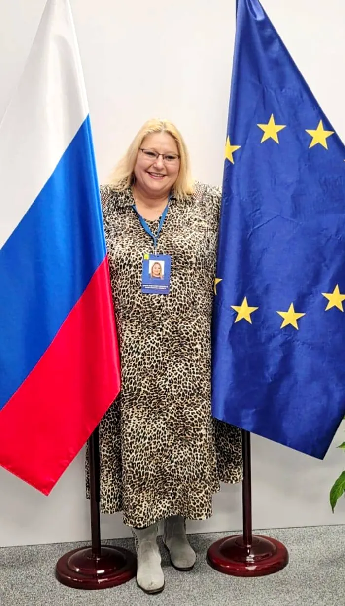 Diana Șoșoacă, între steagurile Federației Ruse și Uniunii Europene