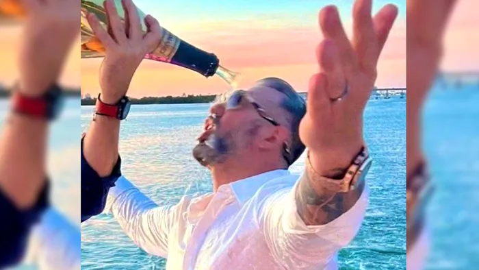 Controversatul afacerist Dragoș Sprînceană, „onorat” cu șampanie turnată direct pe cap