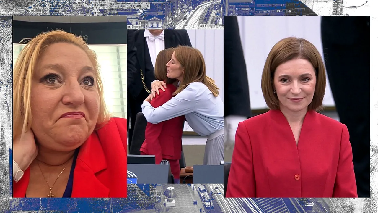 „Stabilitatea noastră este și stabilitatea voastră, pacea noastră este și pacea voastră”. Așa și-a început discursul din Parlamentul European, Maia Sandu, care a spus „povestea Moldovei”, din punctul zero al democrației. În plenara de la Strasbourg, președinta Moldovei a primit aplauze, îmbrățișări și …o strigătură.