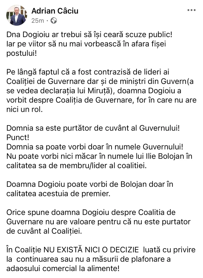 Ca lucrurile să fie și mai clare, la câteva ore după declarația dată pentru Gândul, Dogioiu a postat și pe grupul de presă de la guvern informația potrivit căreia discuții au existat în coaliție și toată lumea a fost de acord.