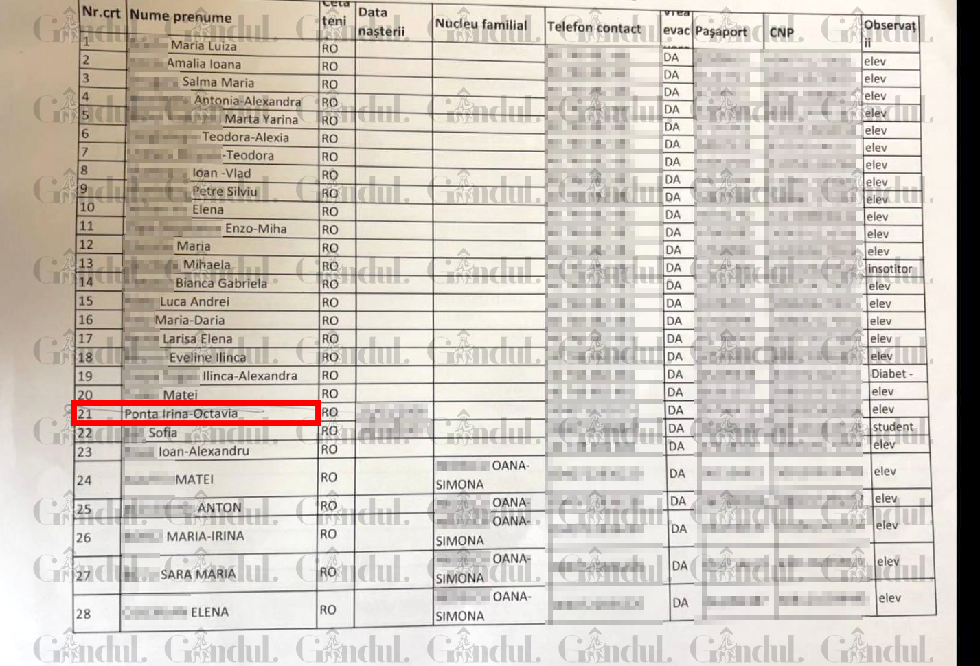 În cadrul unei conferințe de presă, reprezentantul MAE, Andrei Țărnea, a declarat că fiica lui Victor Ponta nu figura pe lista celor care solicitaseră asistență consulară. Un document care circula, în cadrul MAE, la vremea respectivă, și intrat în posesia Gândul, a demonstrat că Irina Ponta se afla pe listele respective. Mai multe detalii AICI.