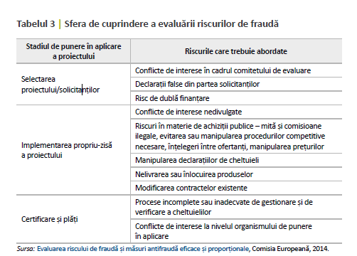 Este important de subliniat că organismele de implementare din România utilizează modelul Comisiei privind riscul de fraudă (tabelul 3).