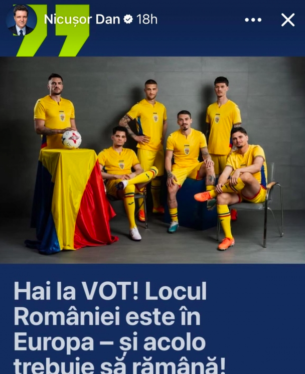 „Referitor la informațiile solicitate, vă aducem la cunoștință că FRF nu are niciun parteneriat cu niciunul dintre candidați. Nu a existat niciun dialog pe această temă între FRF și cei doi. Mesajul folosit în postarea pe care ne-ați prezentat-o a fost publicat pe canalele noastre de comunicare înainte de turul 1 al alegerilor din această lună, mai exact pe 4 mai, dar și anul trecut, în luna decembrie. De asemenea, imaginea cu jucătorii este una care a făcut parte din campania de comunicare a noului tricou de joc al Echipei Naționale de Fotbal, din luna martie a acestui an.”, se mai arată în comunicat. „În încheiere, dorim să reiterăm poziția FRF: Locul României este în Europa și acolo trebuie să rămână!”