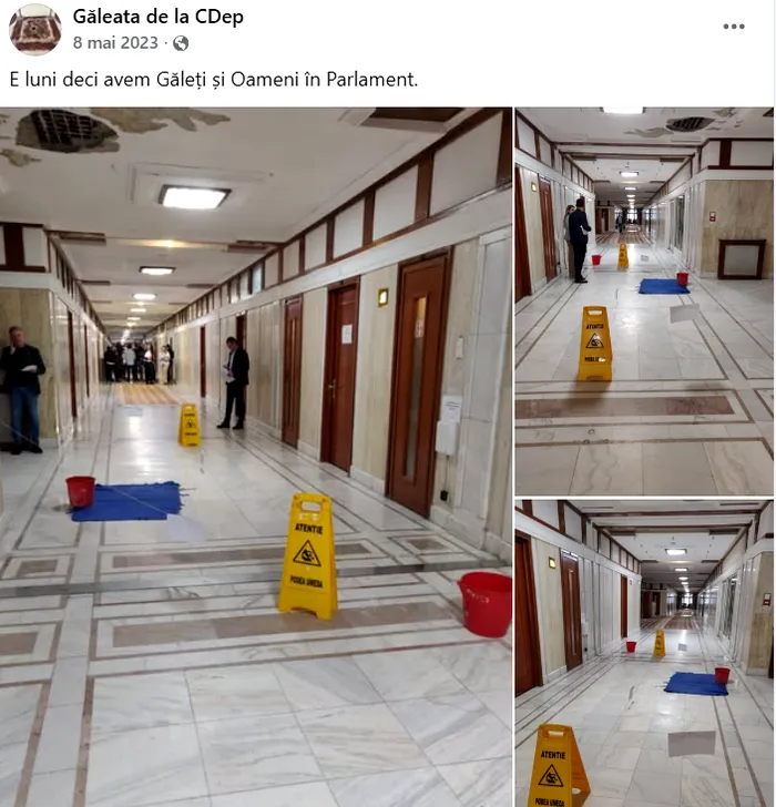 La începutul anului 2023, pe holurile Parlamentului României au apărut zeci de găleți, din cauza apei care curge din tavan. Problema devenise o normalitate.