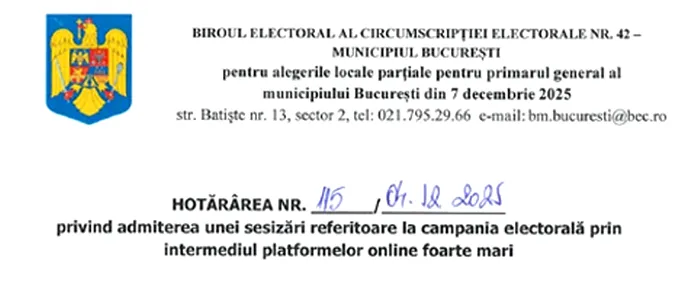 Biroul Electoral de Circumscripție București (BEC) intervine în cazul clipului în care apar președintele Nicușor Dan și candidatul la alegerile din 7 decembrie, Cătălin Drulă. Conform deciziei BEC, Nicușor Dan a încălcat 3 legi ale României și de două ori Constituția. În videoclipul în cauză, Nicușor Dan apare alături de candidatul Cătălin Drulă și discută despre diferite probleme ale Bucureștiului. Materialul a fost publicat drept conținut electoral de USR Sector 3.