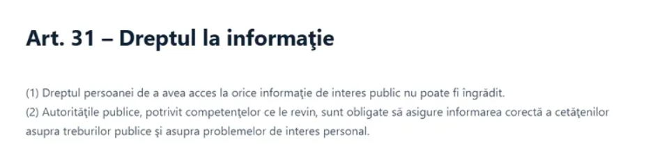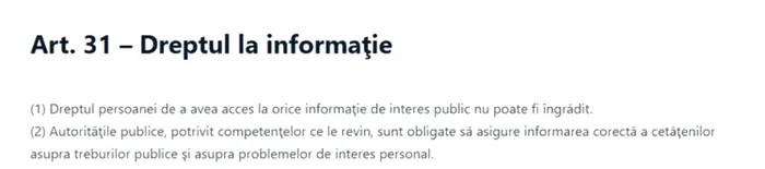 Constituția României garantează, prin Art. 31, accesul neîngrădit la informații de interes public.
