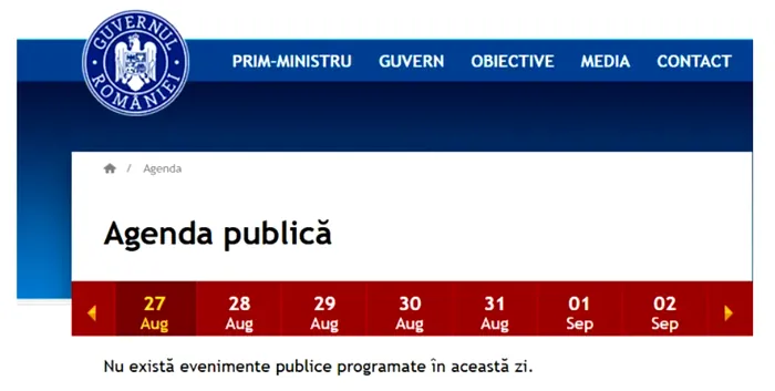 În data de 27 august, premierul Ilie Bolojan s-a întâlnit la Palatul Victoria cu reprezentanții agenției de rating Moody’s. Agenția urma să confirme ratingul de țară al României după reformele impuse de executiv. Pe agenda publică a premierului nu a fost trecut, însă, niciun eveniment.
