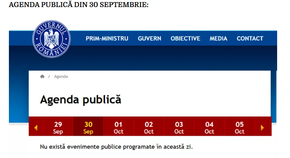 Doar că pe agenda publică a premierului a fost trecută doar… ședința de guvern de ora 16:00.