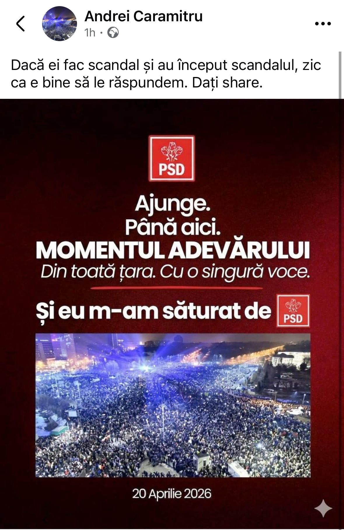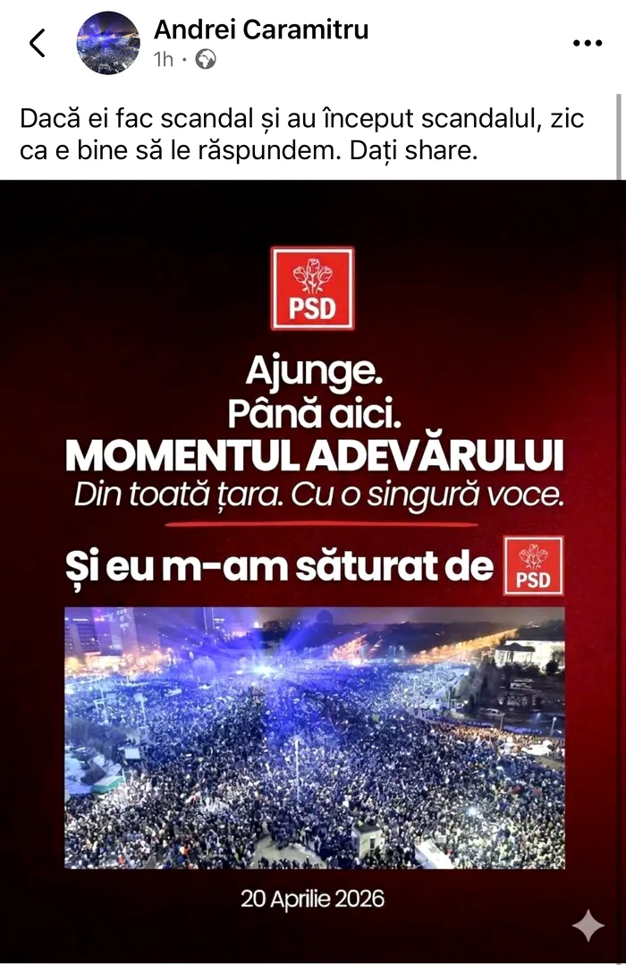 În același registru, Andrei Caramitru a transmis un mesaj explicit de susținere pentru protest, sugerând un răspuns direct la tensiunile politice: „Dacă ei fac scandal și au început scandalul, zic că e bine să le răspundem”.