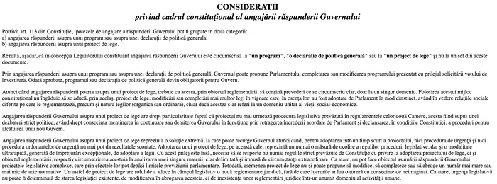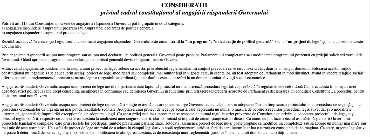 Este un abuz al prevederilor constituționale. Constituția permite asumarea răspunderii nu pentru a trece legi care ar putea să nască discuții, ci Constituția permite asumarea răspunderii în cu totul și cu totul alte situații în care există și o anumită urgență și un alt fond al discuției.