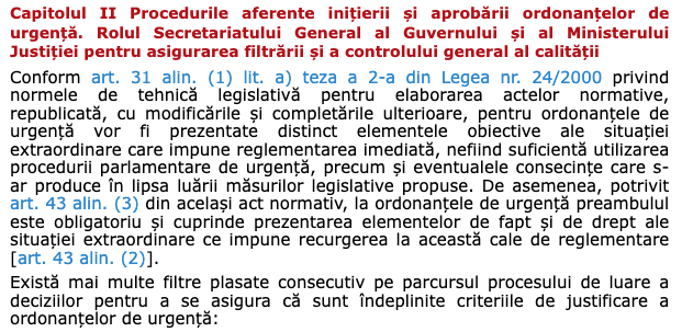 • Motivare: Guvernul are obligația de a justifica în cuprinsul ordonanței caracterul de urgență și situația extraordinară