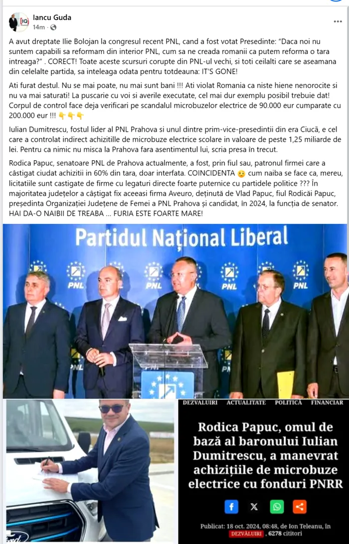 Iancu Guda îl expune pe un fost lider PNL din Prahova care ar fi comis o fraudă de gravitate mare – achizițiile de microbuze electrice școlare în valoare de 1,25 de miliarde de lei: