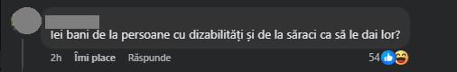 „Iei bani de la persoanele cu dizabilități și de la săraci ca să le dai lor?”, este unul dintre comentariile la postarea lui Bolojan.