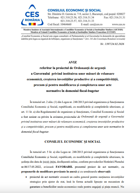 Ședința CES a fost suspendată până vin toate avizele pentru Ordonanțele de Urgență ale Guvernului.