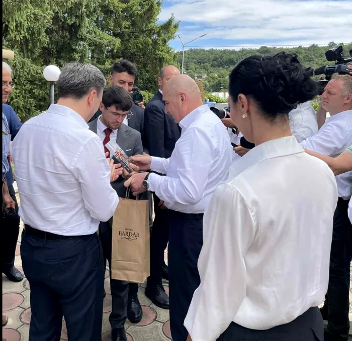 „Suveniruri ale premierului Bolojan din Republica Moldova: de la premierul Recean a primit un ulcior tradițional și o hartă a României cumpărate de la producători locali la Festivalul Tezaur Național 2025, iar de la primarul din satul Bardar a primit o sticlă de coniac Bardar”, a transmis purtătorul de cuvânt al Guvernului, Ioana Dogioiu, pentru Gândul.